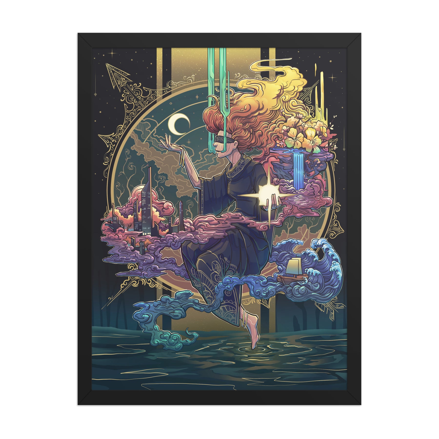 Enjoy this beautifully framed poster of artist Paul Theodore Arruejo's art 'Beyond Our Vision', a 3rd place winning work of High Art 2025. The matte black frame made from wood from renewable forests adds an extra touch of class. High Art takes cannabis art to a new level with an annual international competition open to all artists 18+, located anywhere in the world. Love weed art? Check out our entire line of High Art cannabis fashion and accessories!